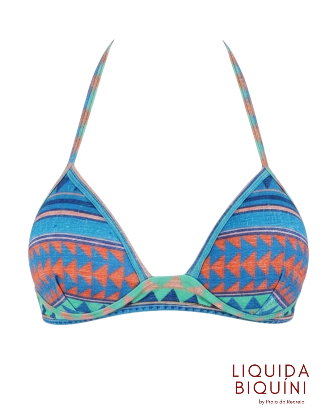 Top de biquíni com base abaixo do bojo, que oferece maior sustentação e encaixe seguro. Bojo, alças finas e estampa colorida que valoriza o look de praia ou piscina. Caimento confortável e acabamento macio.