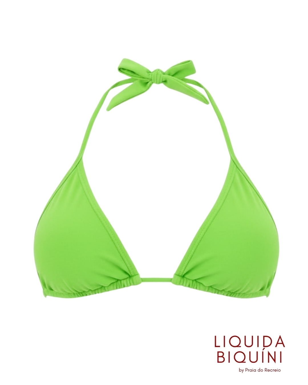 Top de biquíni cortininha básico na cor verde-limão. Possui alças finas com amarração no pescoço e nas costas e cortinas deslizantes, permitindo ajustar a cobertura e o encaixe ao corpo. Tecido macio, com ótima elasticidade e acabamento confortável para praia ou piscina.
