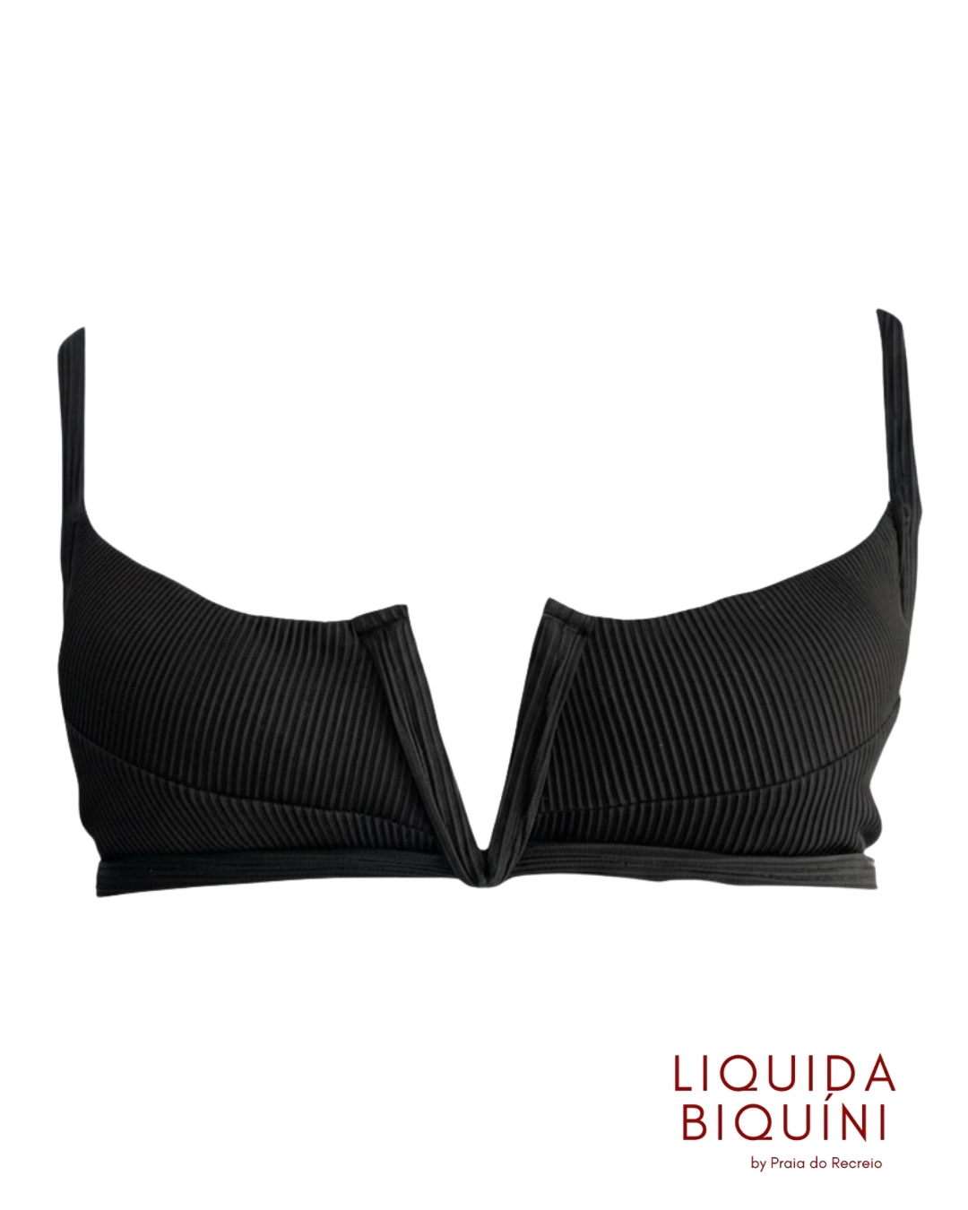 Top de biquíni Tala V na cor preta, com detalhe frontal em V que valoriza o colo e confere visual moderno e elegante. Modelagem confortável, com ótimo ajuste ao corpo e acabamento macio, ideal para praia ou piscina.