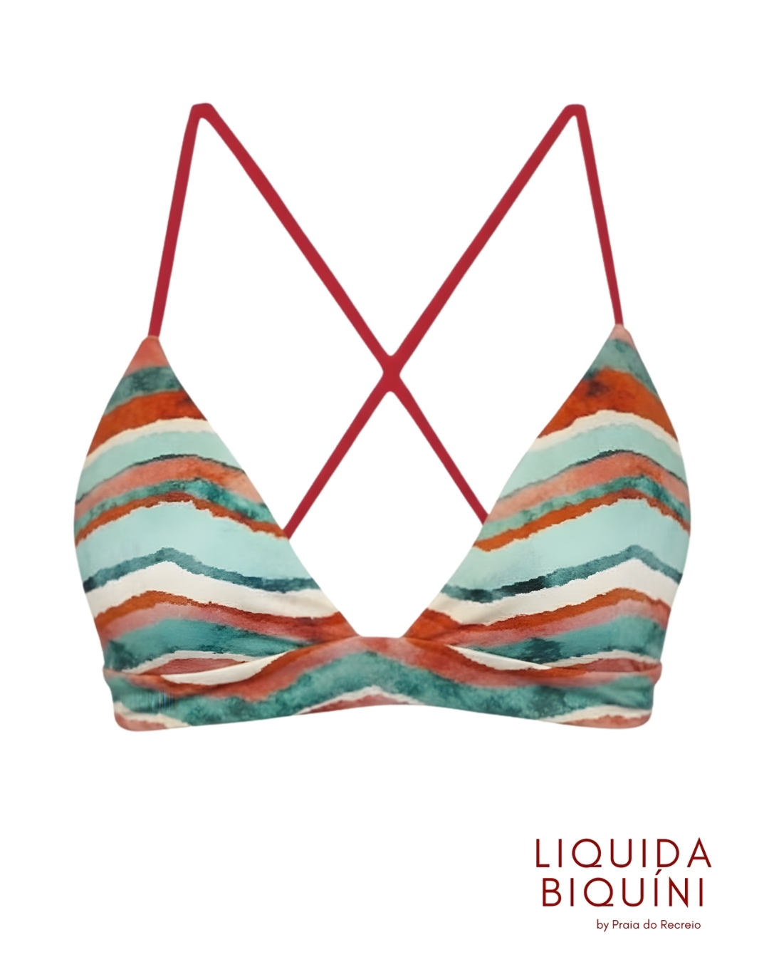 Biquíni Transpassado Cruzado – Estampa Vênus. O top possui faixas que cruzam (efeito transpassado) para melhor sustentação. Tecido macio, com ótima elasticidade e toque agradável, ideal para praia ou piscina.