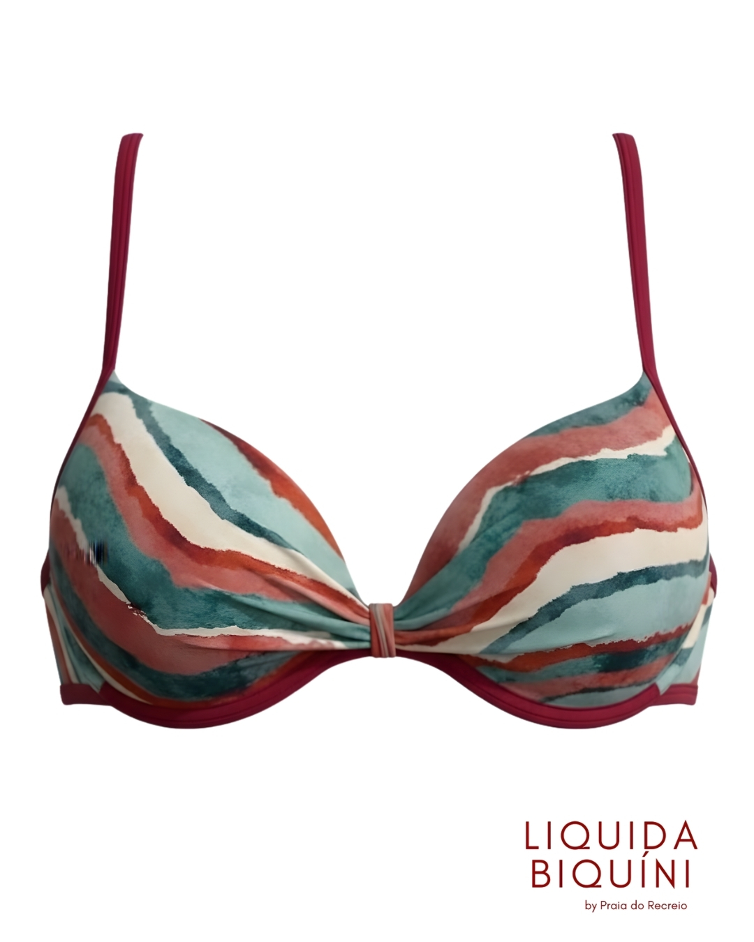 Top de biquíni meia-taça com amarração fixa no decote, que realça o busto e traz um toque feminino. Estampado e modelagem de cobertura média, oferecendo sustentação confortável para praia ou piscina.